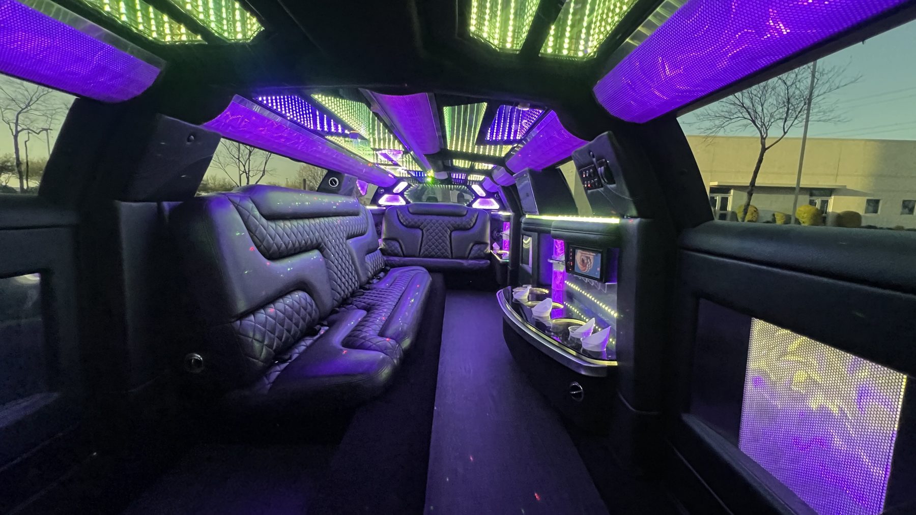 This Dodge Challenger limo is perfect for those who want to make a statement. With features like plush seating, high-end audio systems, and a full bar with crystal champagne flutes, it’s designed for ultimate comfort and style. The marble countertops and eye-catching under-glow lights create an atmosphere that feels both luxurious and exciting. Whether you’re planning a night out, a special celebration, or need a striking vehicle for your wedding day, this limo is the perfect choice.