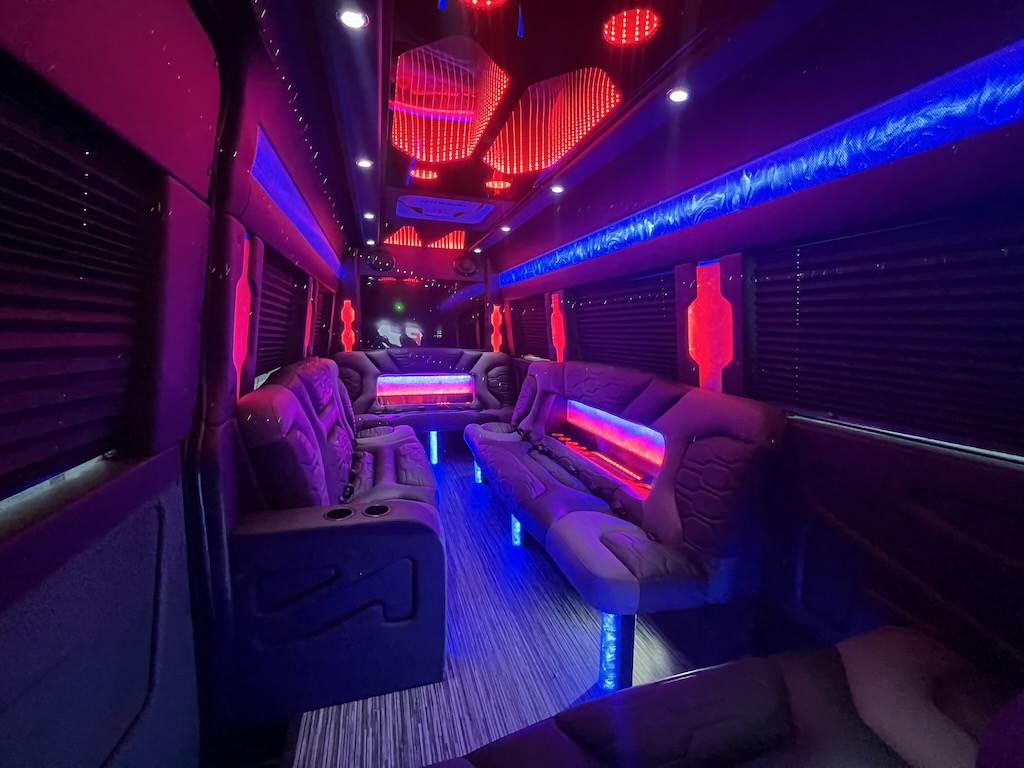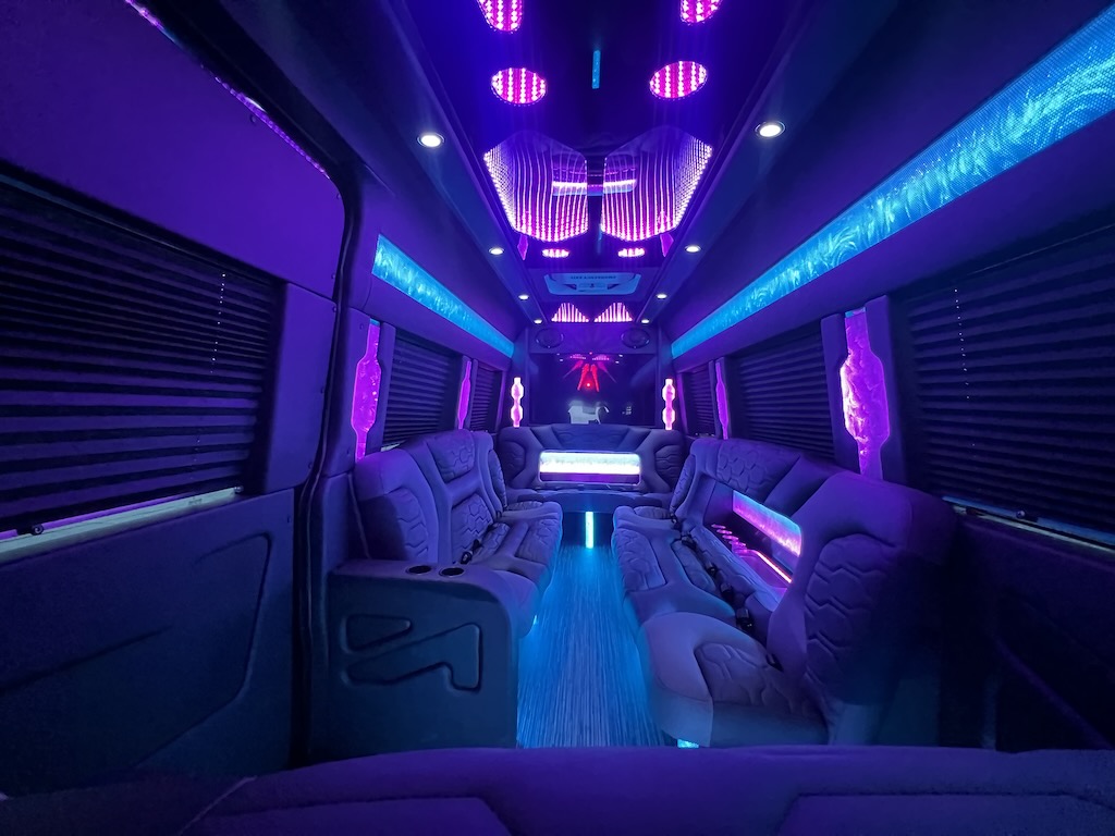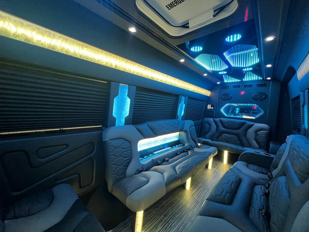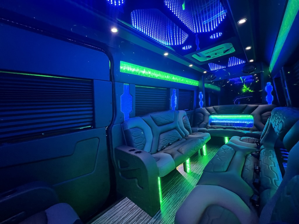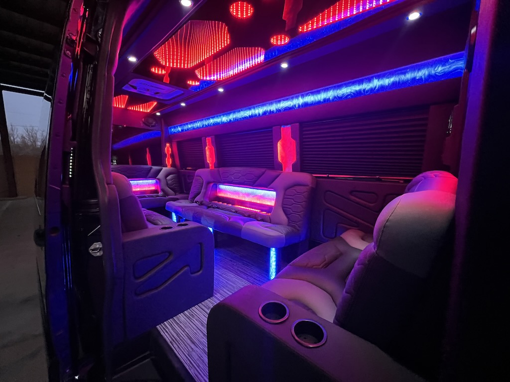 When comfort and elegance are your top priority there is a new option available from Igport Limos. The ALL NEW Mercedes Benz Sprinter is a “Private Jet” on wheels. The Sprinter Limousine will accommodate 14 passengers and has a large luggage capacity. The vehicle offers all of the amenities of a traditional limousine and much more. The large sliding entry door provides easy entry and exit, and the height allows for passengers to stand and walk to their seat compared to traditional limousine which is more restrictive. The Igport Limos Mercedes Sprinter has been custom built and is one of the most modern and elegant anywhere in Dallas/Fort Worth metro area. Whether it’s for business or pleasure, nothing will treat you and your guest to a more luxurious experience than this ALL NEW Mercedes Sprinter Limosuine.