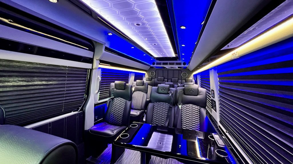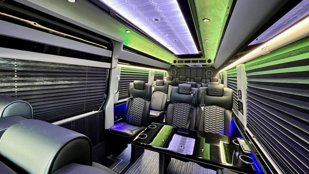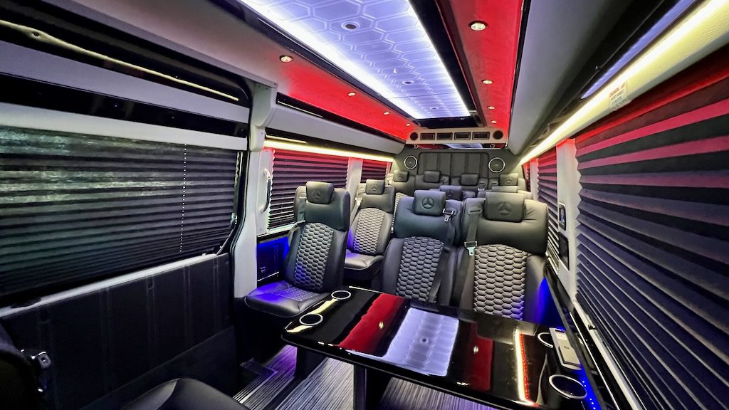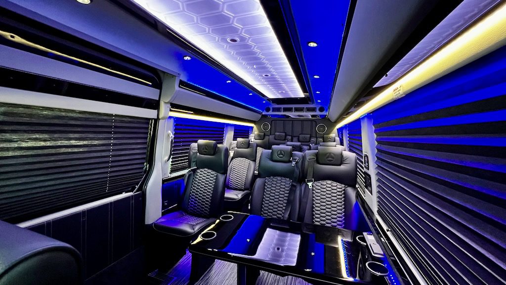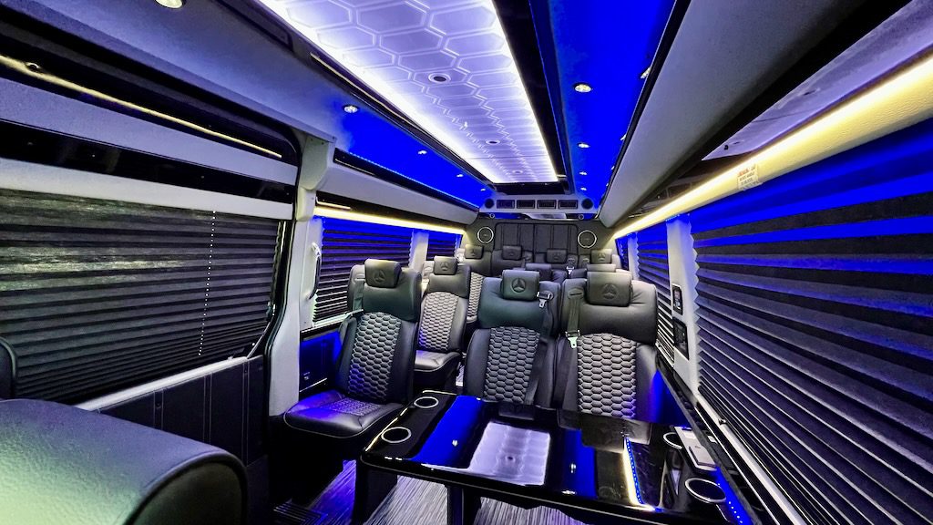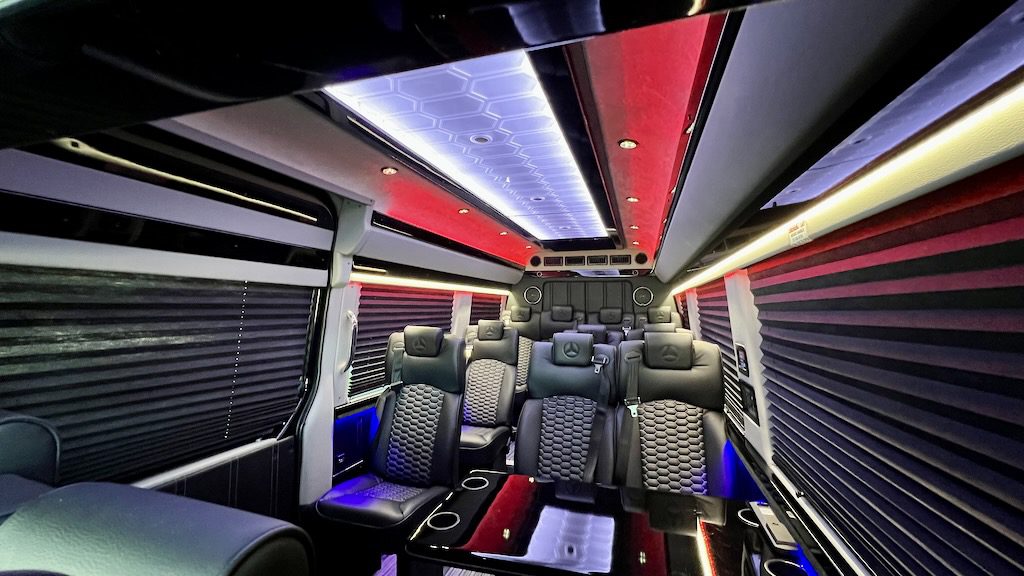 When comfort and elegance are your top priority there is another new option available from Igport Limos. This ALL NEW Mercedes Benz Sprinter is a “Private Jet” on wheels. This executive Sprinter will accommodate 13 passengers plus a co-pilot and has a large luggage capacity. The vehicle offers most of the amenities of a traditional limousine and much more. The large automatic sliding entry door provides easy entry and exit, and the height allows for passengers to stand and walk to their seat compared to traditional limousine or SUV which is more restrictive. This new Igport Limos Mercedes Benz Executive Sprinter has been custom built and is one of the most modern and elegant anywhere here in the Dallas/Fort Worth metro area. Whether it’s for business or pleasure, nothing will treat you and your guest to a more versatile and luxurious experience than this ALL NEW Mercedes Executive Sprinter.