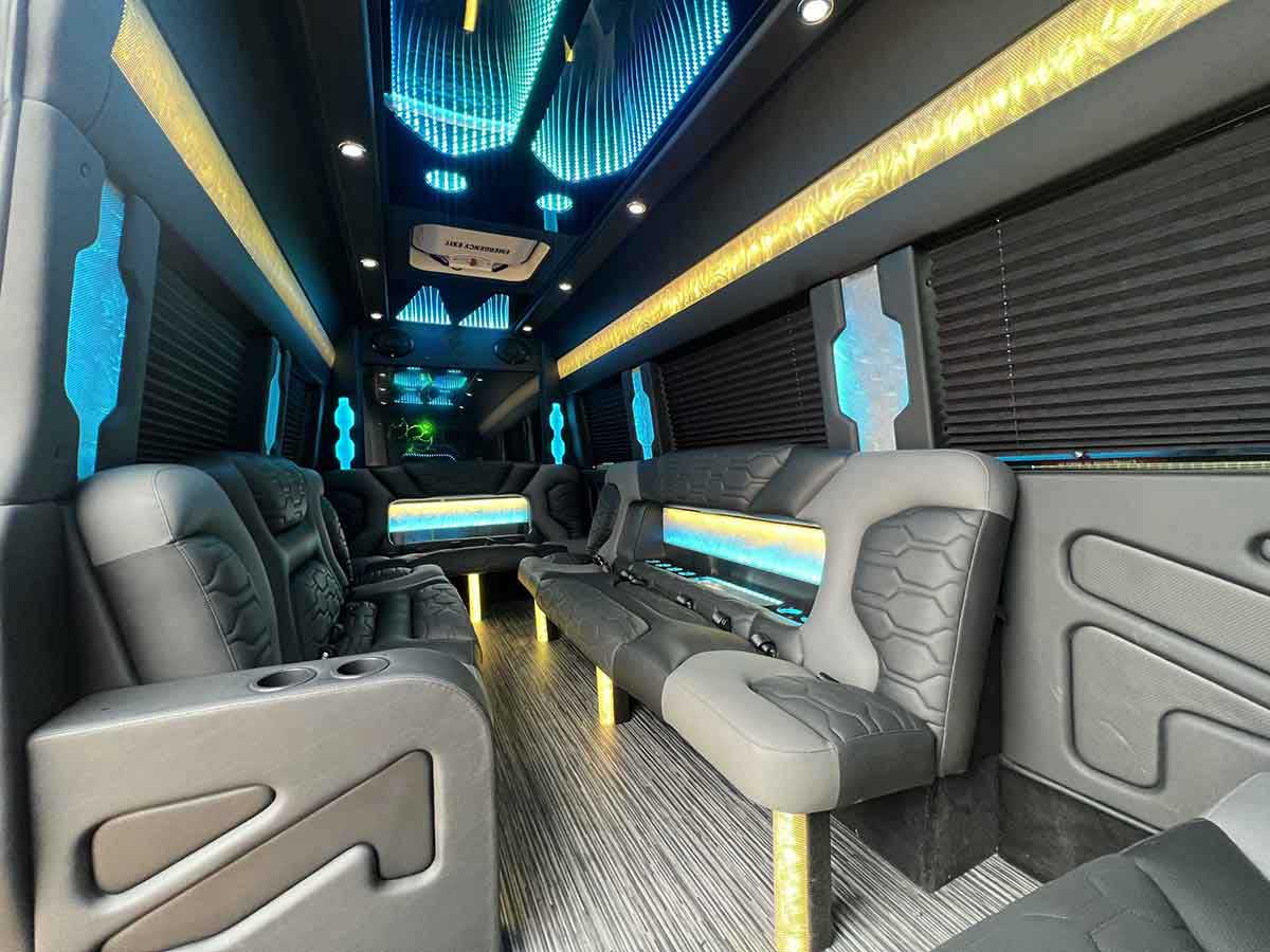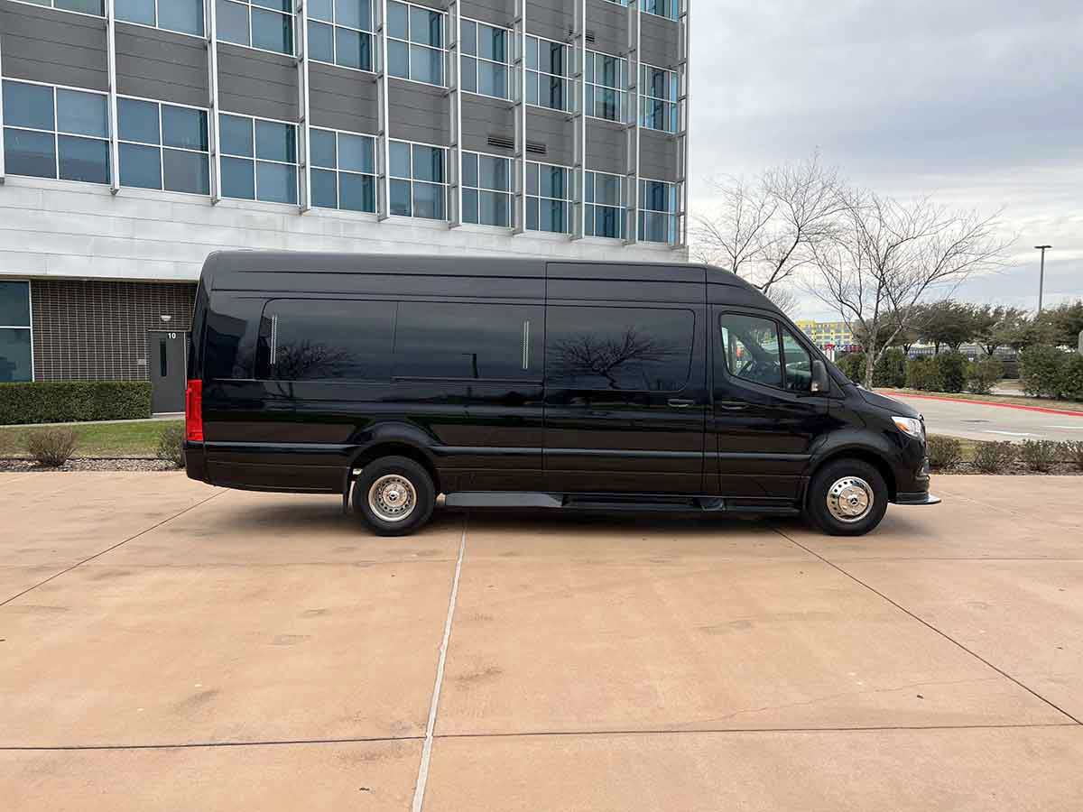When comfort and elegance are your top priority there is a new option available from Igport Limos. The ALL NEW Mercedes Benz Sprinter is a ā€œPrivate Jetā€ on wheels. The Sprinter Limousine will accommodate 12-14 passengers and has a large luggage capacity. The vehicle offers all of the amenities of a traditional limousine and much more. The large sliding entry door provides easy entry and exit, and the height allows for passengers to stand and walk to their seat compared to traditional limousine which is more restrictive. The Igport Limos Mercedes Sprinter has been custom built and is one of the most modern and elegant anywhere in Dallas/Fort Worth metro area. Whether it’s for business or pleasure, nothing will treat you and your guest to a more luxurious experience than this ALL NEW Mercedes Sprinter Limosuine.