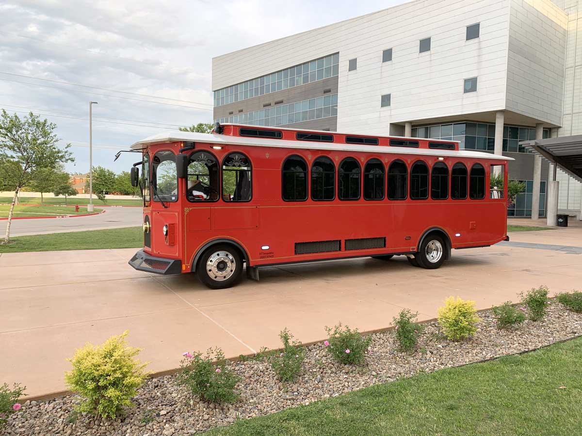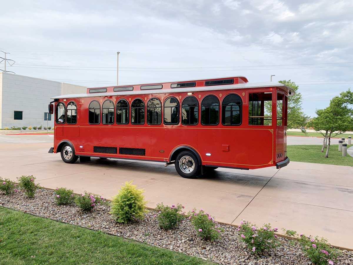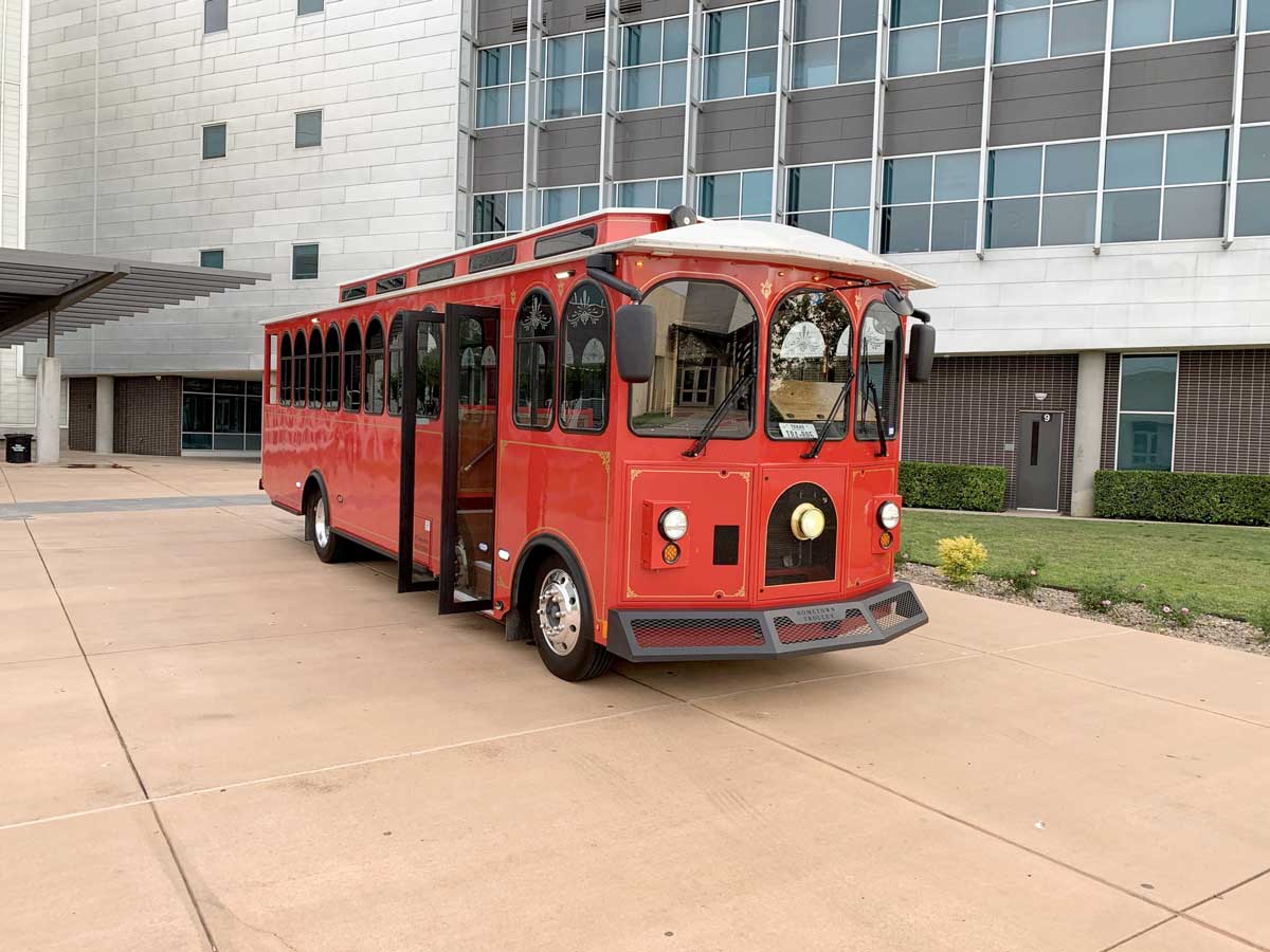 Make your special occasion truly unforgettable by booking our brand-new luxury red trolley bus. Serving the Dallas/Fort Worth metro area, our premium Trolley Bus Rental is the perfect choice for weddings, parties, and other celebratory events. Whether youāre in Arlington, Mansfield, Plano, Colleyville, Southlake, Westlake, Fort Worth, or surrounding areas, our Dallas Trolley Bus service will add a unique touch to your event. As the only limousine service in the region to offer this classic transportation option, we are proud to provide both small and large groups with a fun and memorable travel experience. Our meticulously trained chauffeurs are skilled in operating the enclosed trolley buses, ensuring a safe and smooth ride for all passengers. Our Trolley Bus is ideal for creating lasting memories with friends and family. Enjoy scenic views, take stunning photos, and share great moments while traveling in style. Whether youāre celebrating a wedding, corporate event, or a festive holiday light tour, our trolley bus offers comfort and excitement for everyone on board. With seating for up to 35 passengers, our trolley buses are fully equipped with air conditioning and heating, ensuring your comfort year-round. Bring your favorite beverages, relax, and let the fun begin as you travel to your destination in comfort and style. We offer services throughout the Dallas/Fort Worth metro area, including Arlington, Plano, Fort Worth, McKinney, Grand Prairie, Allen, Southlake, and beyond. Contact us today to reserve your Trolley Bus for your next event or tour.Get a Quote