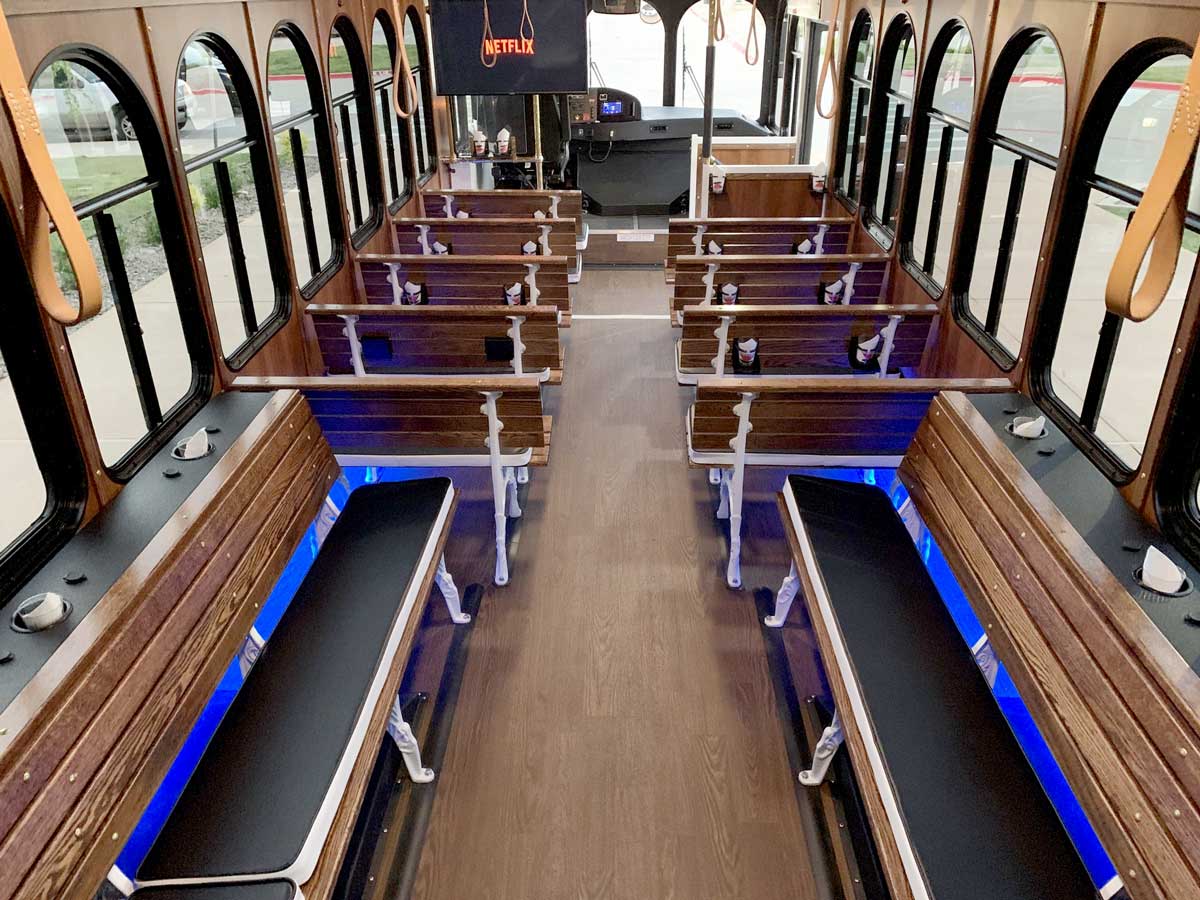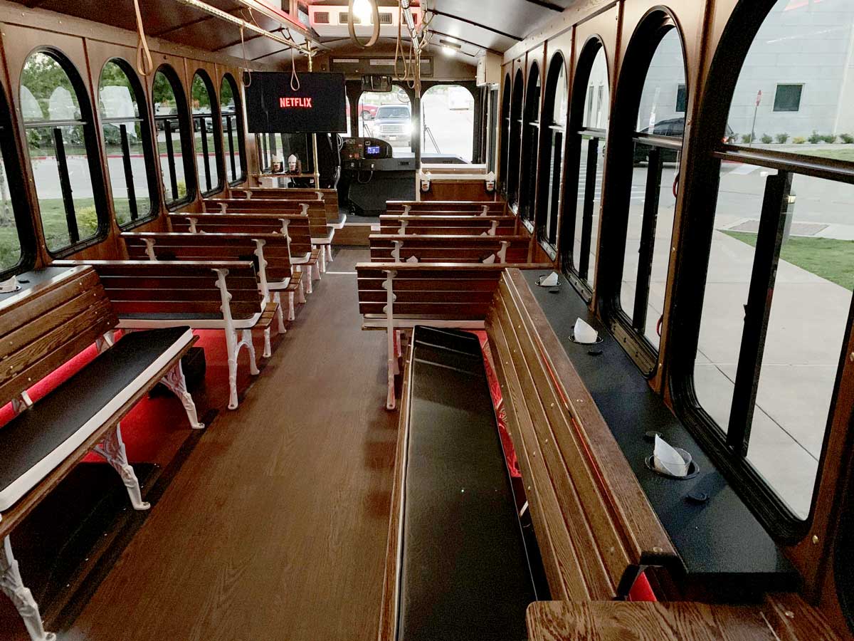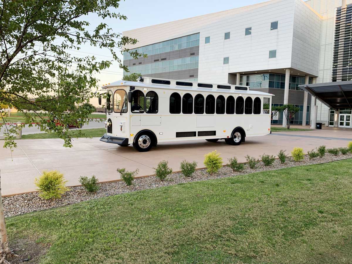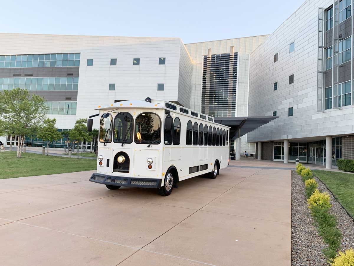 Due to overwhelming demand for our Dallas/Fort Worth Wedding Trolley Services, Igport Limos has added the most sought after top of the line white wedding trolley available in the industry. This ALL NEW ultra modern yet vintage looking luxury trolley bus features a slick exterior combined with a rich and elegant interior for the ultimate in luxury for your wedding party, corporate group, or other large event. With a balcony just like all our wedding trolleys, this vehicle will transport large groups in total first class luxury! Even the custom yellow pinstripes compliments the spiral brass bars; this makes this luxury and nostalgic trolley a unique and comfortable experience. Our trolley offers classic wooden seat, cupholders, USB power ports, cushions for additional comfort and RBG LED lights at the Coppola and floor lights to set the mood for a party or accent blue/white LED lighting for corporate event. From the air-ride suspension to state of the art electronics, this trolley is the BEST of the BEST. Add charm to your big day by traveling to your ceremony aboard our elegantly-styled wedding trolley. The entire bridal party can ride together, making your arrival to the chapel, photo site, and reception even more memorable. Our classic trolleys are perfect for candid wedding group pictures. You may have family and friends arriving from all over the state, or even the country. Many of these people may be unfamiliar with the area; so let us be your designated driver, helping your family and friends get to the wedding ceremony and back safely to the hotel after the reception.Get a Quote
